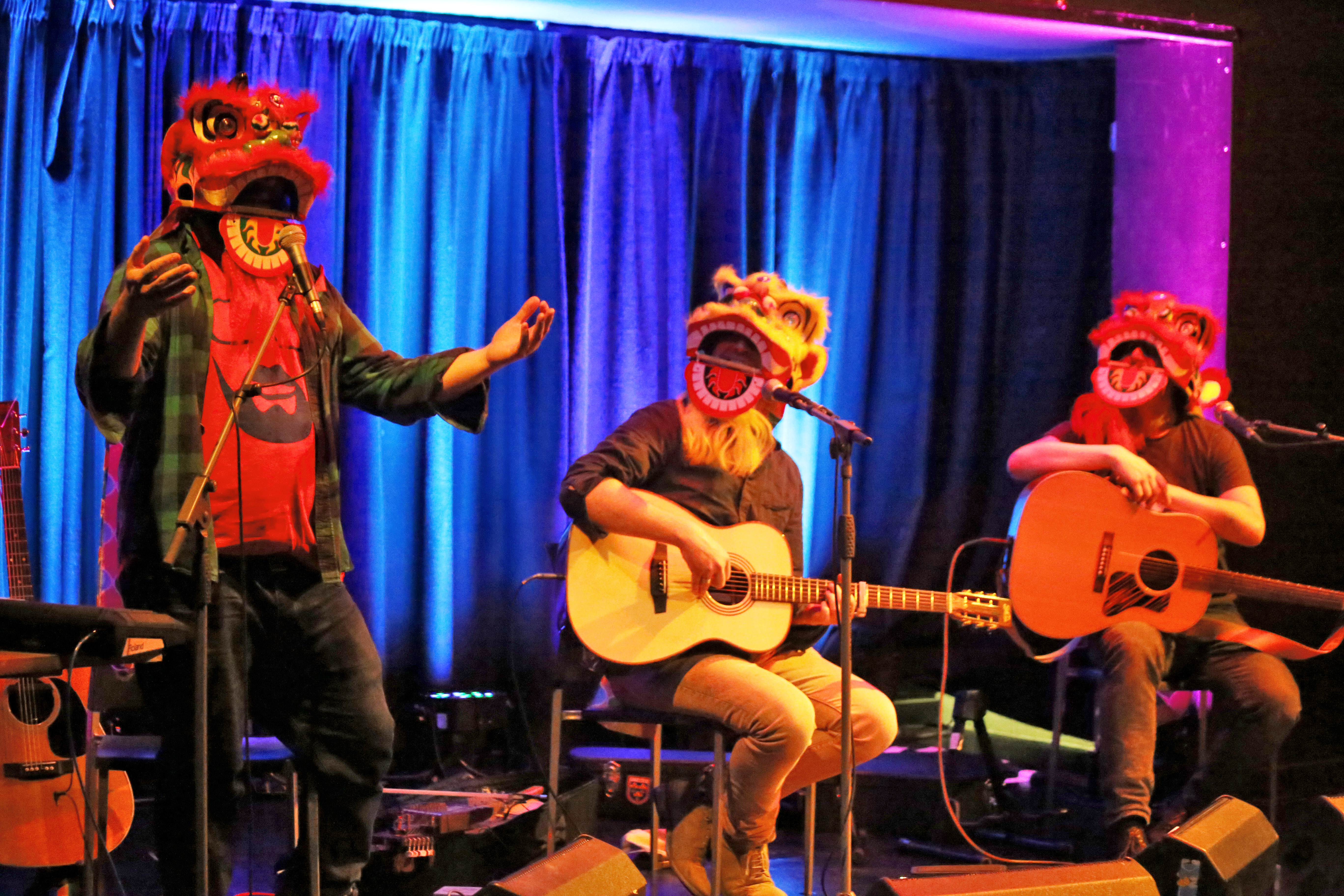The audience sat in reverential silence, laughed at the easy-going on-stage patter shared between the three artists and lapped up what is already a contender for Gig Of The Year. As the artists signed merchandise and chatted to fans at the end, they too agreed this had been the best night of the tour, and not just because they’d raided the HAC’s wardrobe department and appeared for the 2nd half wearing three Chinese dragon heads. Honestly, you really had to be there…