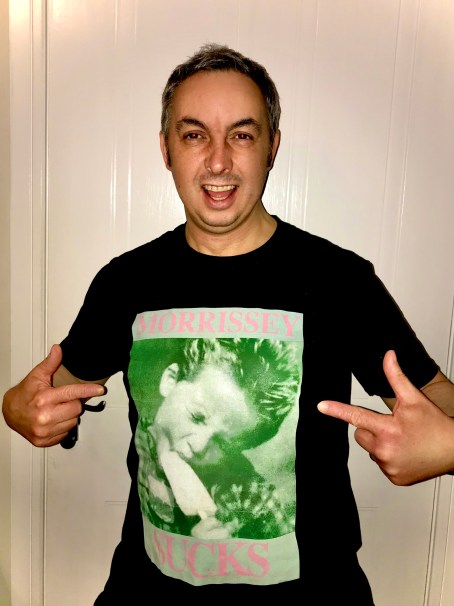 After a bit of persuading, yer actual Billy Bragg offered to email Shona the digital artwork for what was a one-off t-shirt and so it came to be that I now have my own Billy-fashioned Morrissey Sucks t-shirt, only the second of its kind in the world. I’m very much looking forward to sporting it wherever it might get under the skin of the most vocal of Morrissey apologists.
