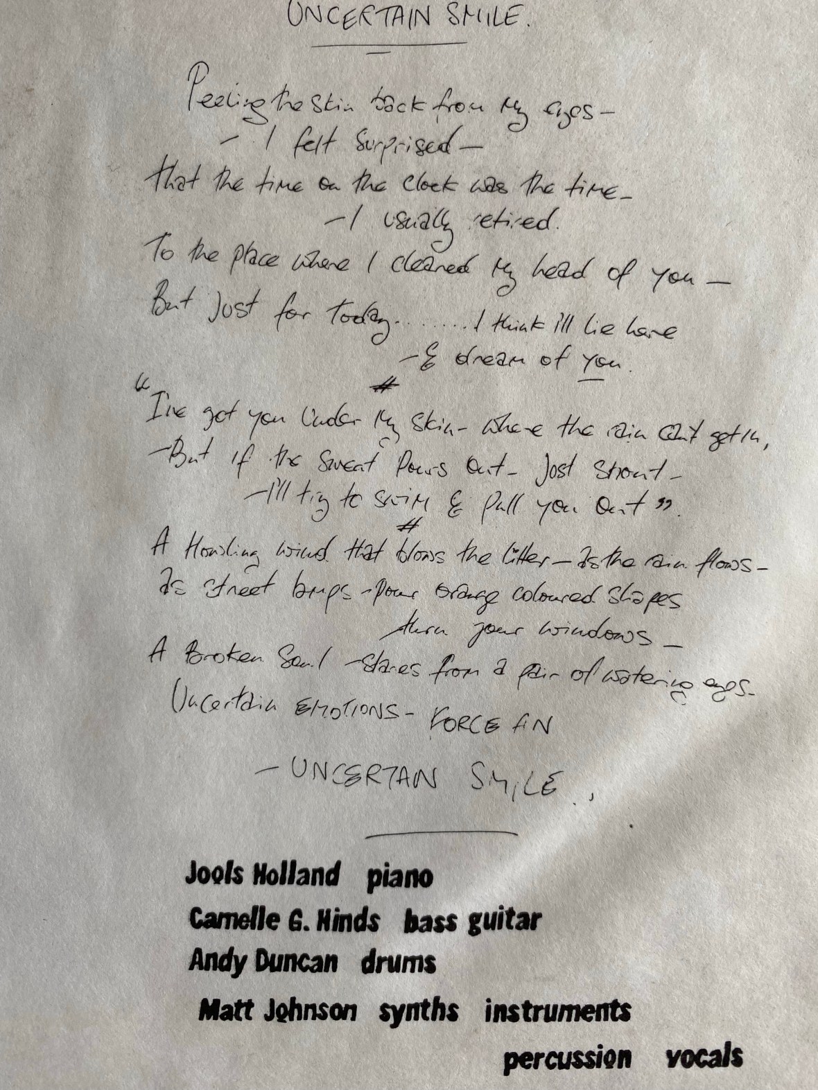 Undeniably keeping a keen ear on proceedings was a pre-debut album Lloyd Cole, who would adopt the same approach when he came to record his vocals on Rattlesnakes. It’s not even up for debate. Contrast and compare Lloyd’s grinning, gulping vocal on his album’s title track with Johnson’s delivery on Uncertain Smile and see/hear for yourself.