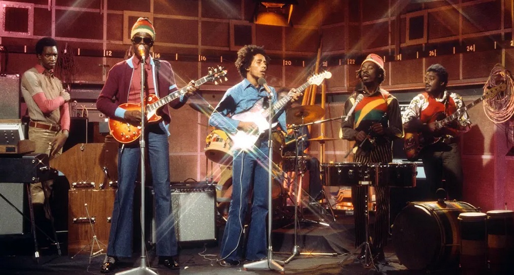 The kids sat in studied appreciation as Marley sang the words I’d told them previously, his band playing with effortless cool. Marley might’ve been centre-stage, but it was clearly his band who were driving it. Not only did they look great, they played great too. A practically motionless and stoned immaculate Peter Tosh barely touches the strings of his guitar yet the opening notes, all open wah and weeping pain, meander fluid and free before falling into its rocksteady chicka-chicka rhythm. The easy, soulful falsetto he contributes throughout is the perfect counterpoint to the melancholy and sadness of Marley’s lead vocal. The keys, very reminiscent of Stevie Wonder’s Superstition I noted to myself, (I hadn’t noticed that before) clack and squeak their way into the groove, never in the way but always there for requisite funk.