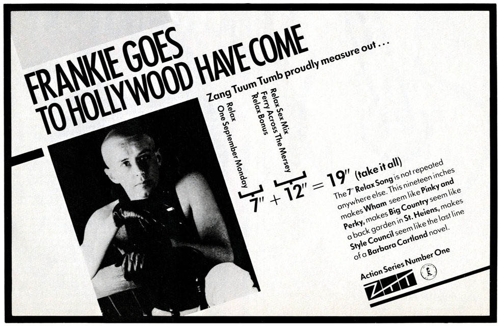 The marketing machine that rumbled behind every Frankie Goes To Hollywood release (and t-shirt) saw to it that each of their first three singles made it to the top of the charts. Coming after The Beatles and Gerry and The Pacemakers, they were the third Merseyside act to achieve three number one singles in a row, but whereas their 60s counterparts got there via non-stop touring and ubiquitous hourly spins on Radios Luxembourg, Caroline and London, Frankie took a different route.