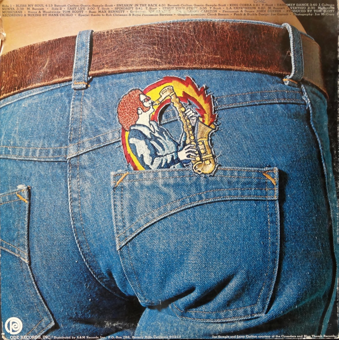 The soundbed is lifted wholly from Tom Scott & the L.A. Express‘s 1974 jazz funk epic Sneakin’ In The Back. Contrast and compare…