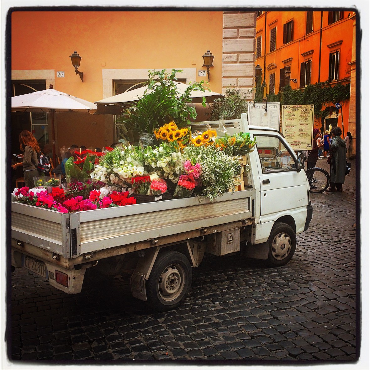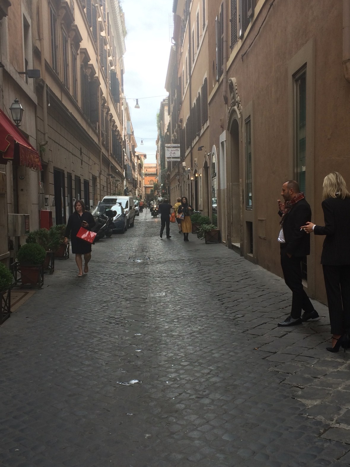 We might’ve been walking the tourist route but what was happening just behind the main event was where real Roman life was going on; ridiculously fashionable men; tanned, healthy, great hair and sock-less, always sock-less, smoking roll-ups while shaking on business deals. Beautiful women in beautiful heels walking beautiful dogs. Snooty teenagers, Armanie’d up like paninaro with significant disposable income hug and air kiss like the beautiful people they are.