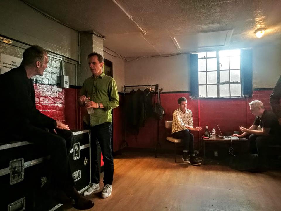 I was fortunate to see the band twice in the space of a week. Last Sunday I was invited to see them open for Del Amitri at the Barrowlands. This wasn’t the first time the Trashcans had played here. A short 28 years ago they provided support for Prefab Sprout, a gig most memorable for Frank doing an Iggy on the PA system before we (myself, my pals and select Trashcans) hot-footed it back to Irvine for a night in The Attic. To my regret I didn’t even stay for Prefab Sprout, but when you’re young and daft and your popstar pals want to share tour stories and dance to their own records in their hometown, that’s what you do.