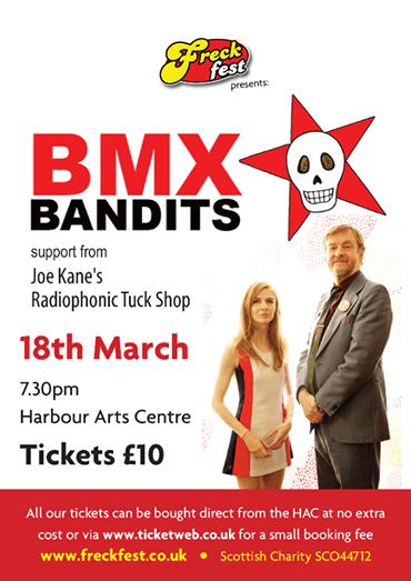 That Irvine gig 25 years ago was, if memory serves me correctly, a really great gig. On a patch of land overlooking the harbour, 1000+ folk (the picture above doesn’t do it justice, believe me!) momentarily turned our wee part of the world into the best place on the planet. The Harbour Arts Centre holds just a fraction of that audience, and amazingly, there are still a handful of tickets left for their upcoming show. Will BMX Bandits once again turn our wee part of the world into the best place on the planet? You better believe it!