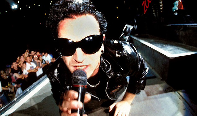 Three albums in, and U2 were the Bunnymen on steroids. A guitar-heavy irony-free zone, they waved their silly giant flags, planked their pixie boots firmly on their monitors and, with collar-bothering bouffants blowing gently in the stage fan-assisted breeze, set their sights firmly on world domination. Bravely, a change was required. Less bombast, more European was the brief.